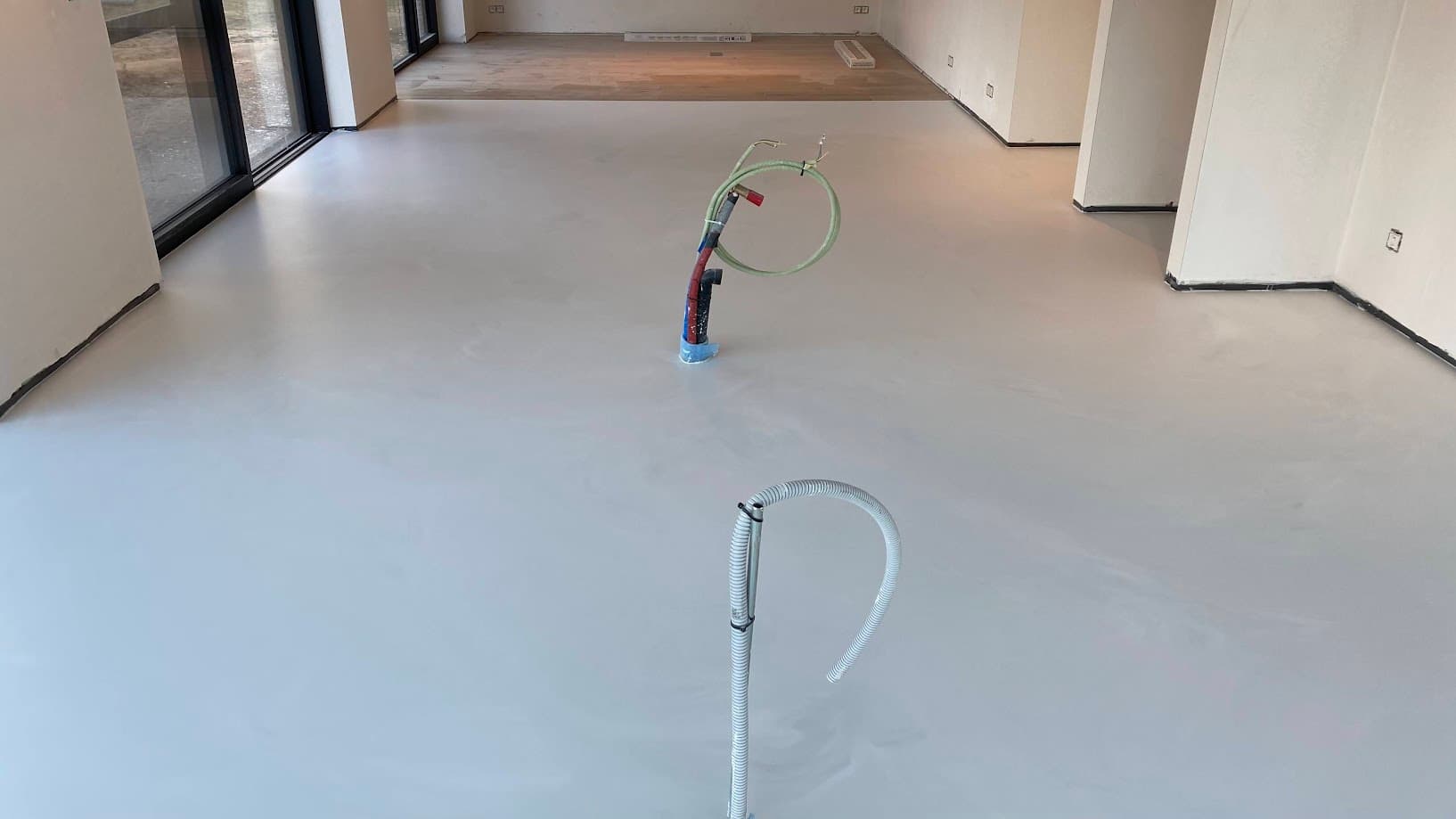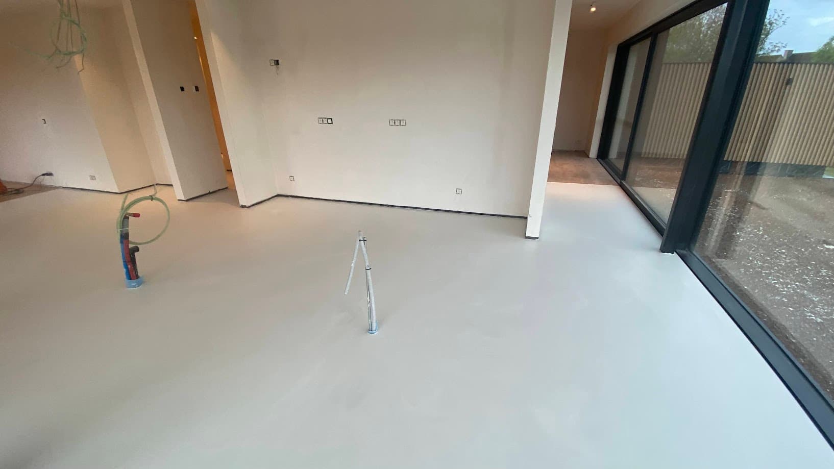 Alifatische pu gietvloer in betonlook nieuwbouw Lochristi
