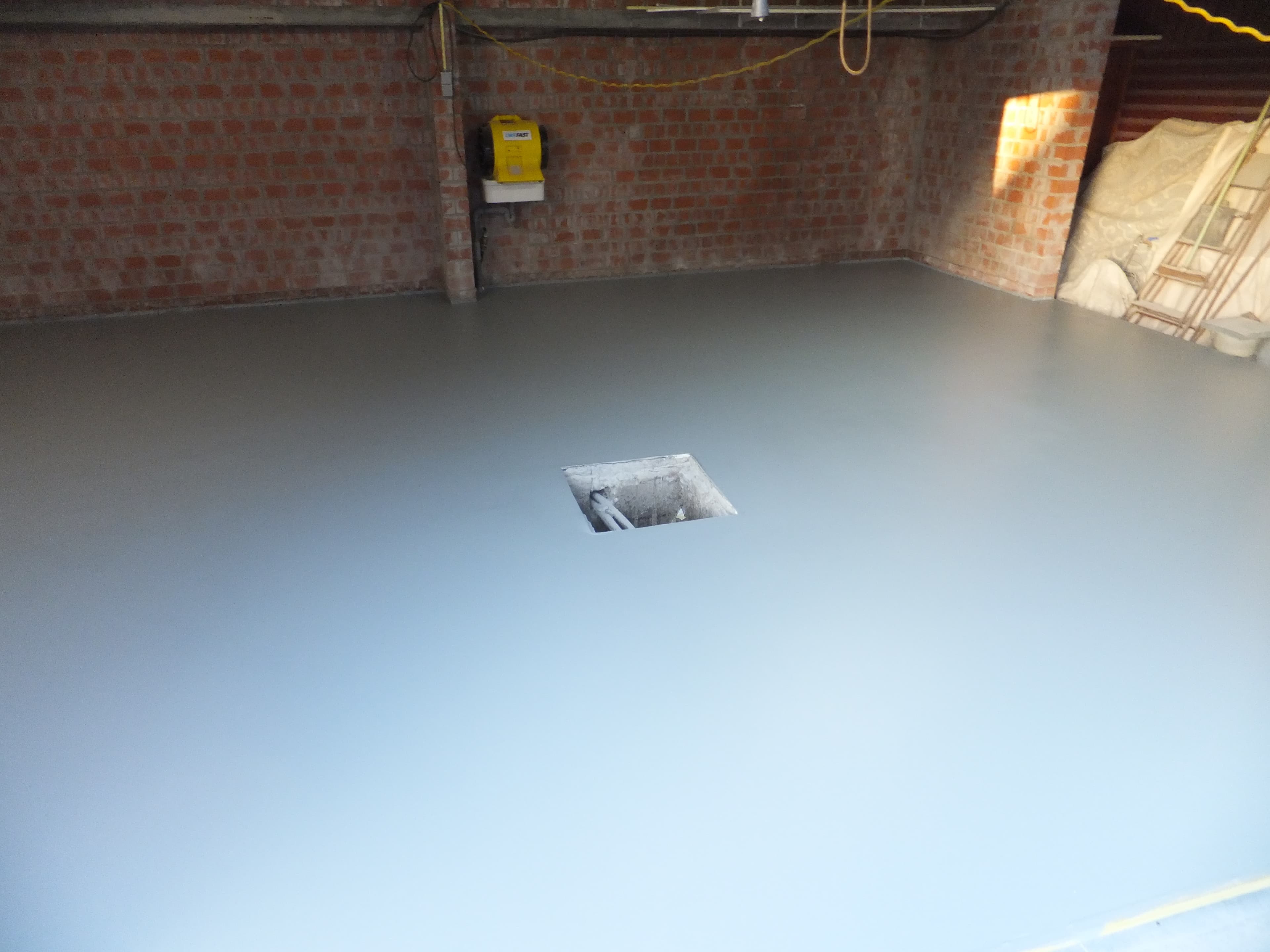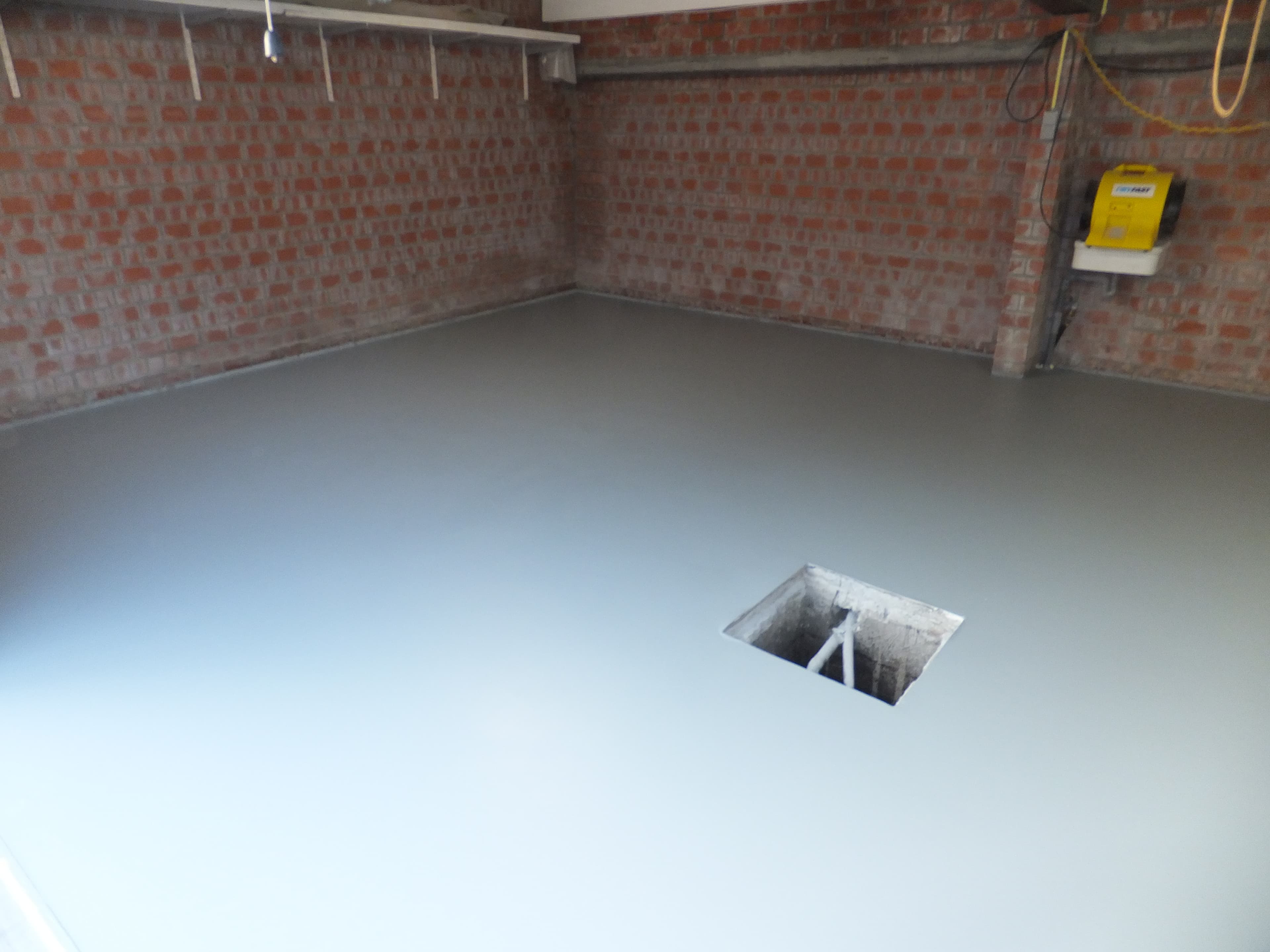 Een epoxy gietvloer geplaatst in een berging in Roeselare.