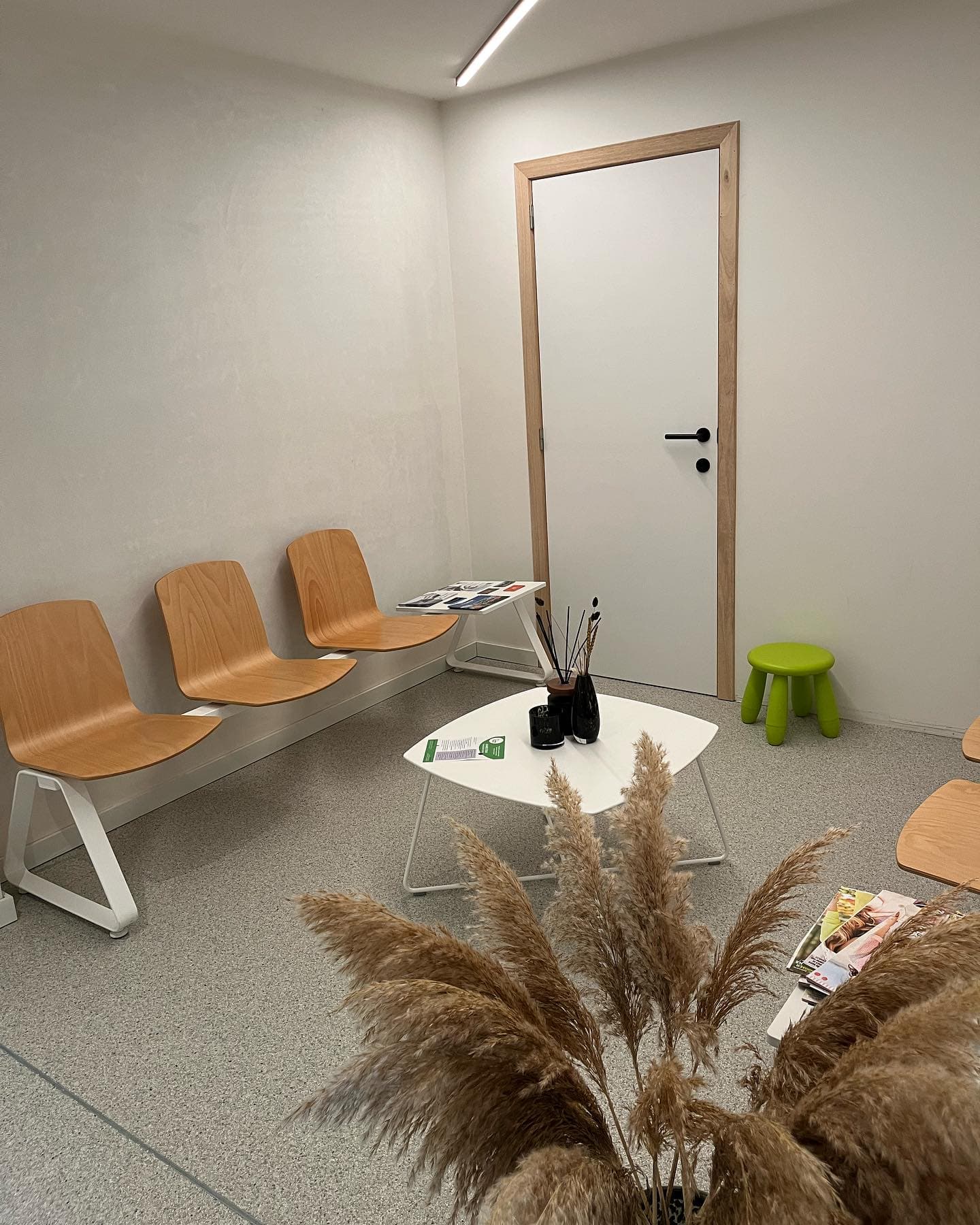 Het steentapijt bij Kiné@Motion Staden combineert functionaliteit met een strakke esthetiek, wat een professionele en uitnodigende sfeer creëert voor een breed scala aan gezondheids- en welzijnsdiensten.