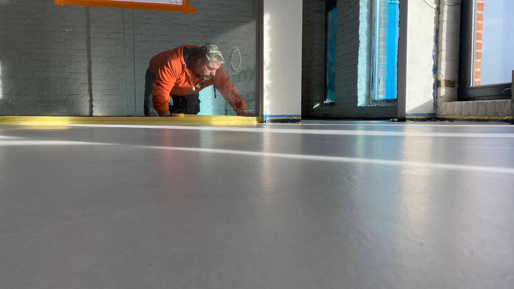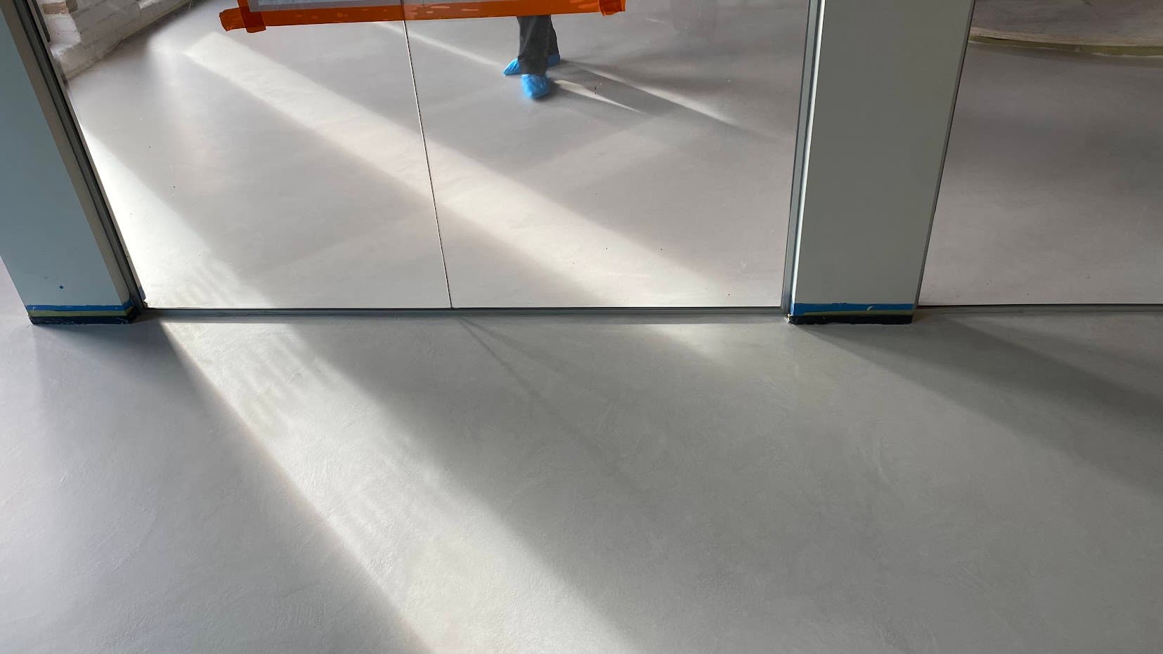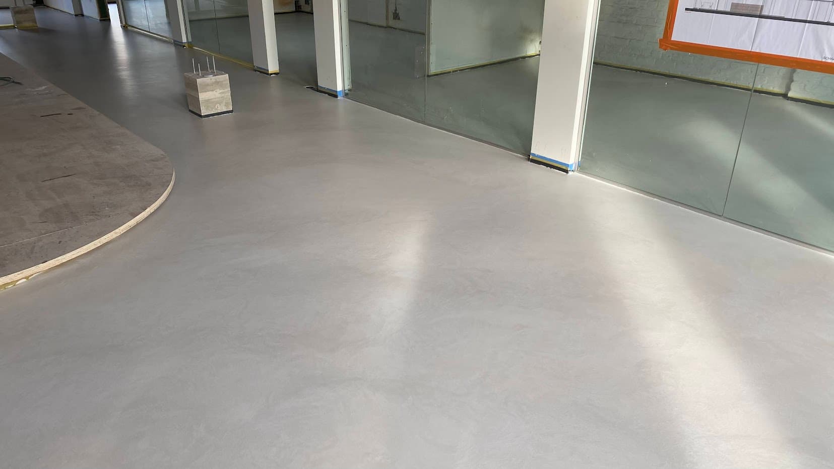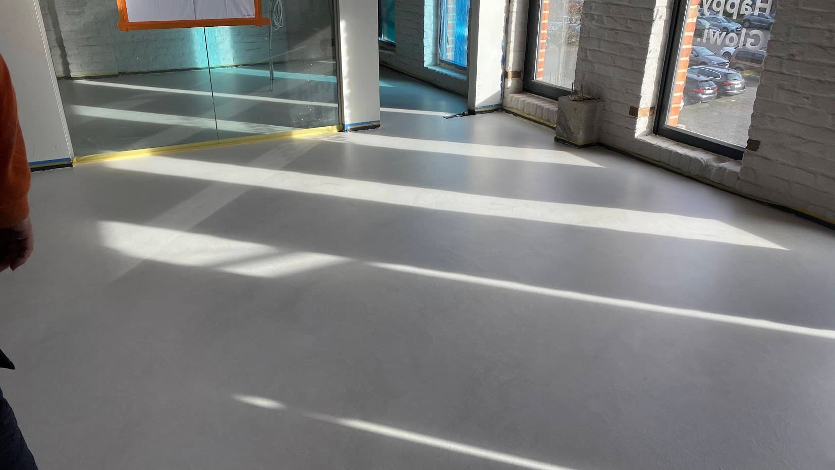 Ervaar de ultieme luxe van ons exclusieve Forcrete microcement vloersysteem, aangebracht in een kantoorgebouw op een bestaande polierbetonvloer. Deze naadloze en moderne vloerafwerking biedt een harmonieuze samensmelting van stijl en duurzaamheid.