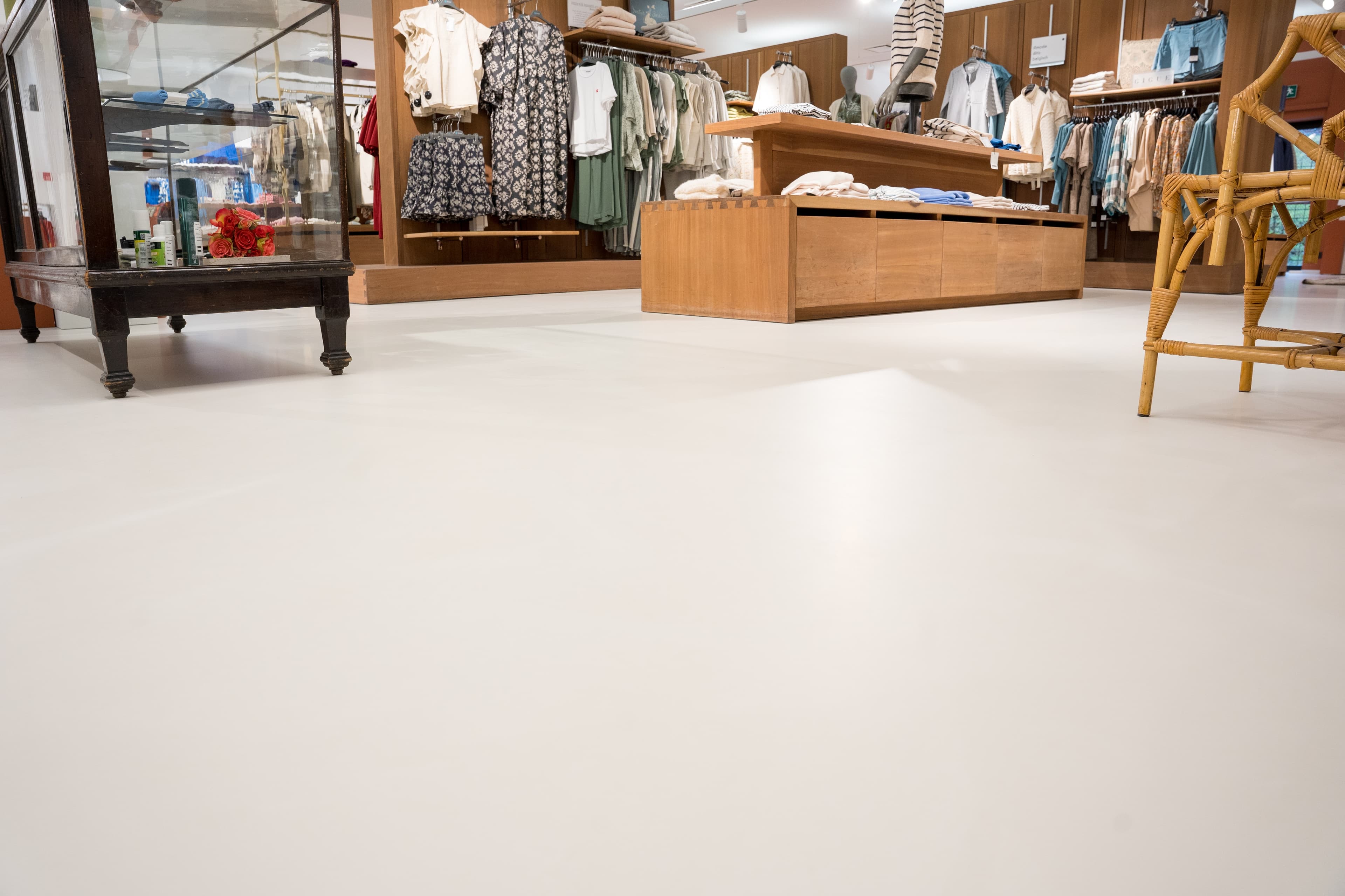 Een prachtige PU gietvloer in een kledingzaak te Deinze.