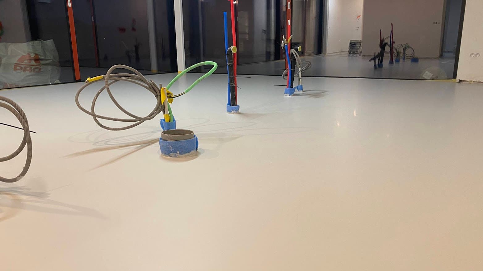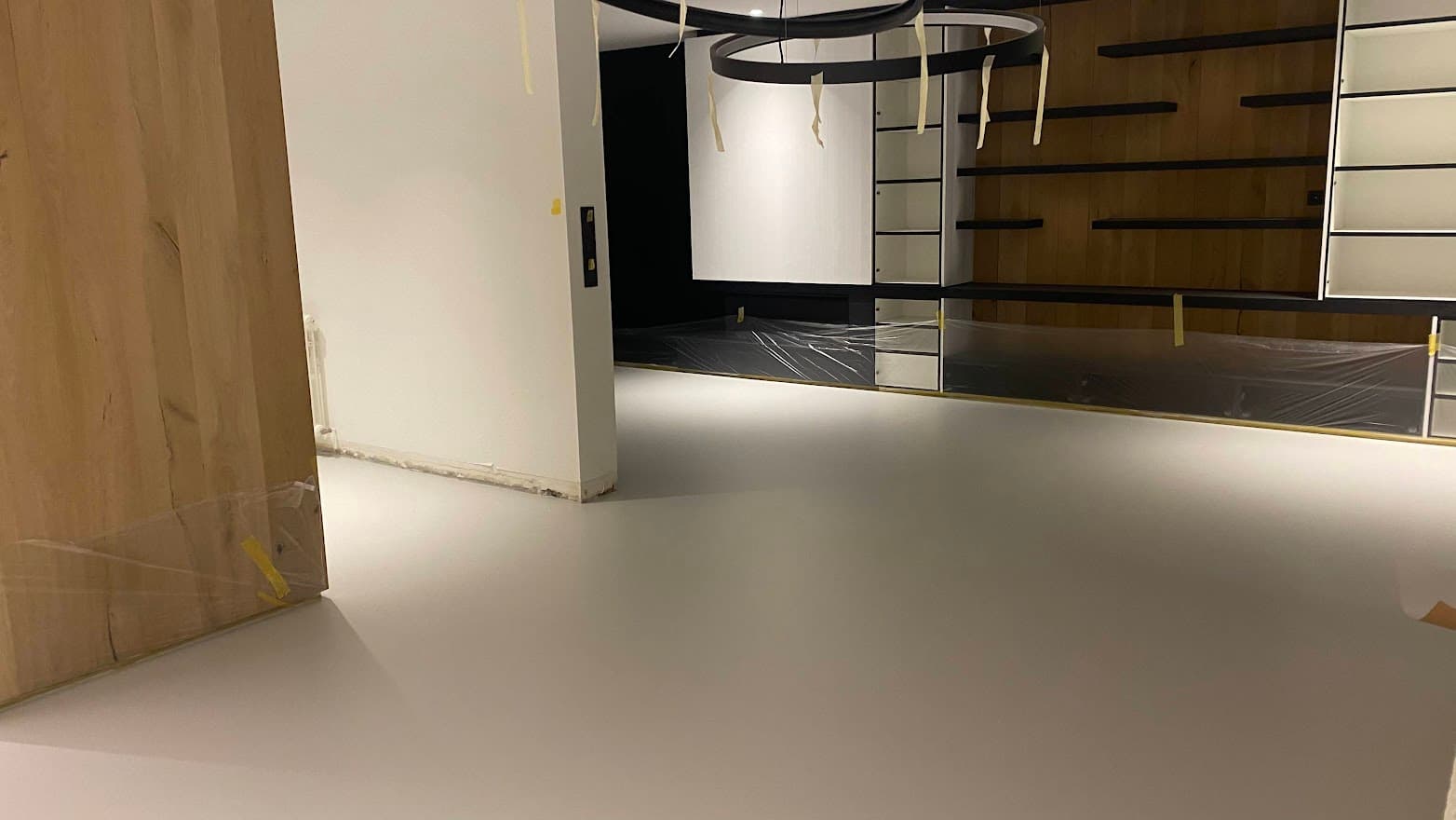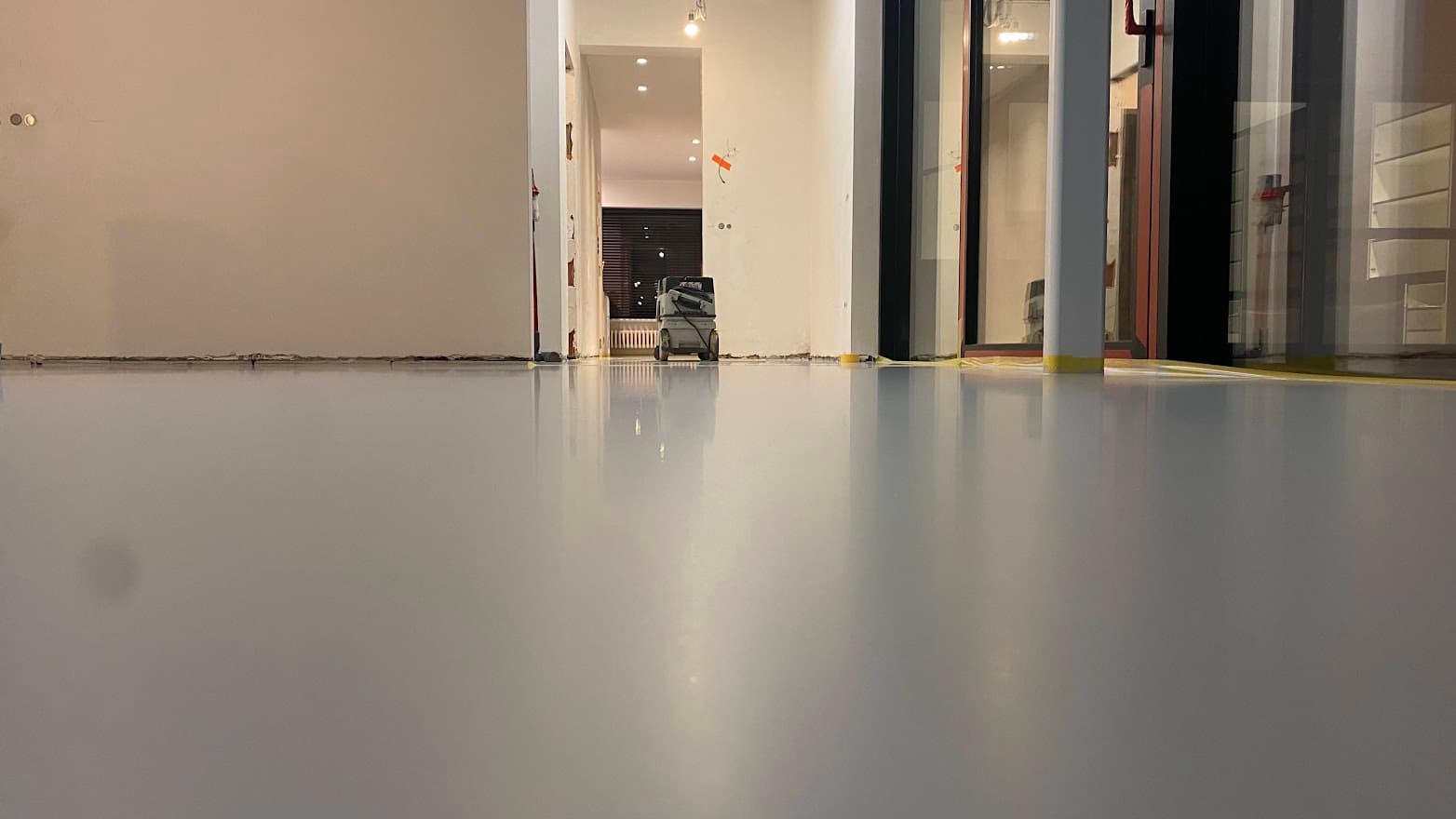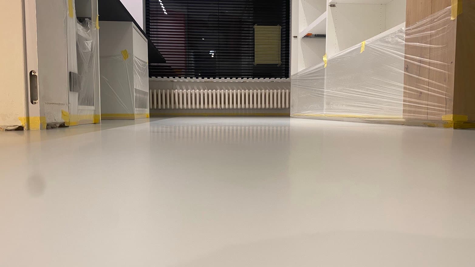 Een prachtige PU gietvloer in de leefruimte van Koekelare.