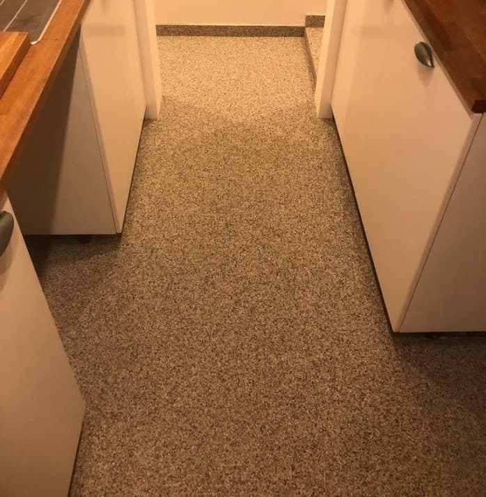 Ontdek de tijdloze elegantie van ons steentapijt in de natuurlijke kleur, naadloos aangebracht op een bestaande tegelvloer.