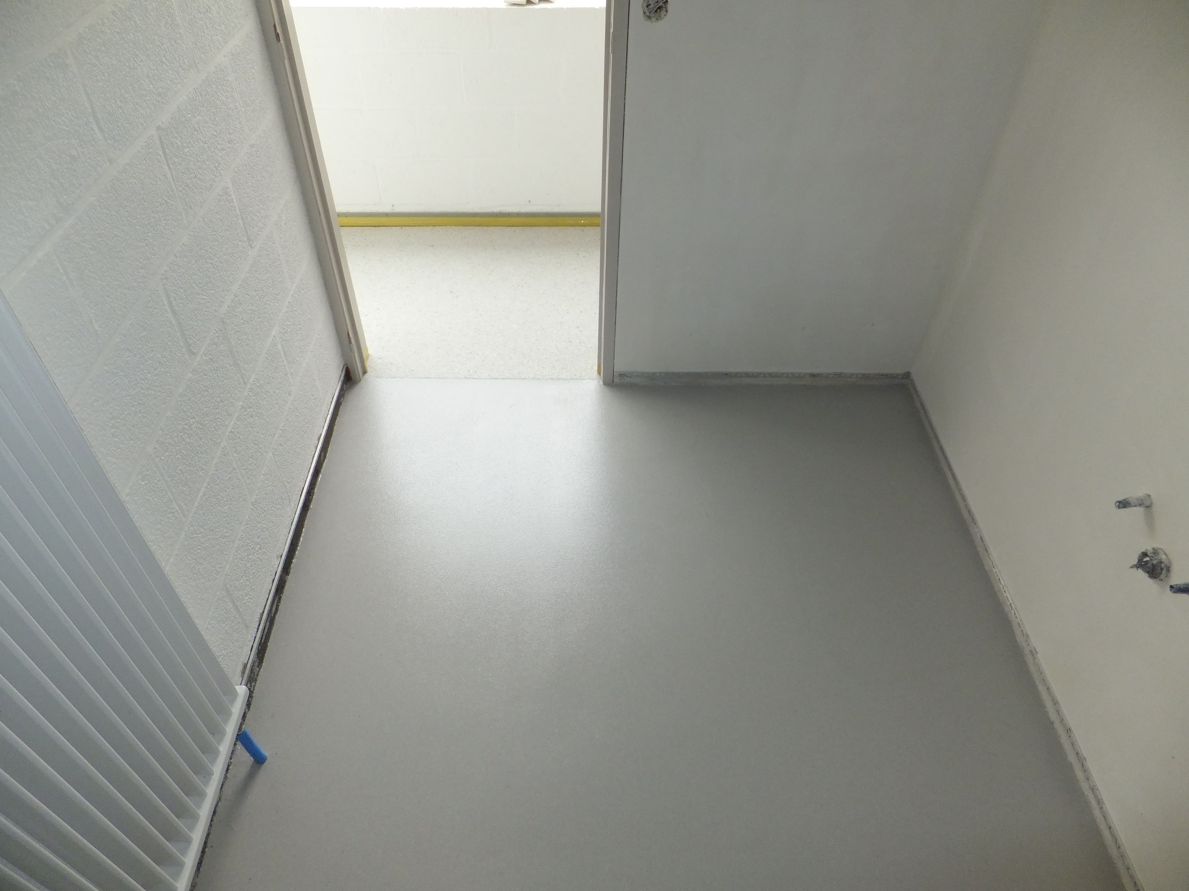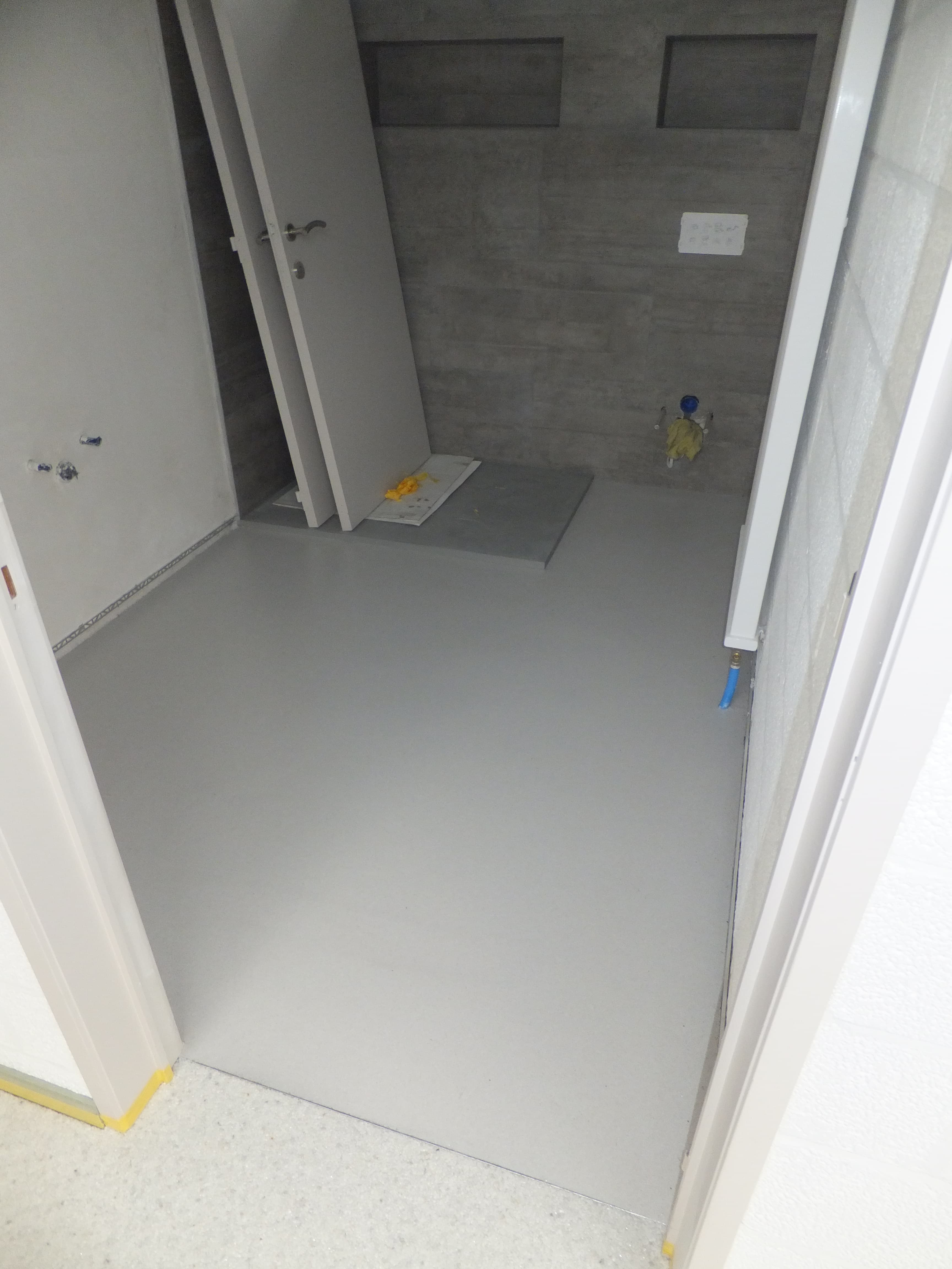 Een troffelvloer aangebracht in de badkamer in Moorslede.