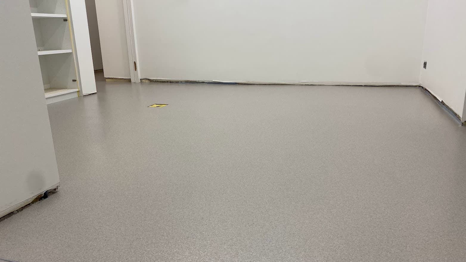 Een troffelvloer in de praktijkruimte van Zwevegem.