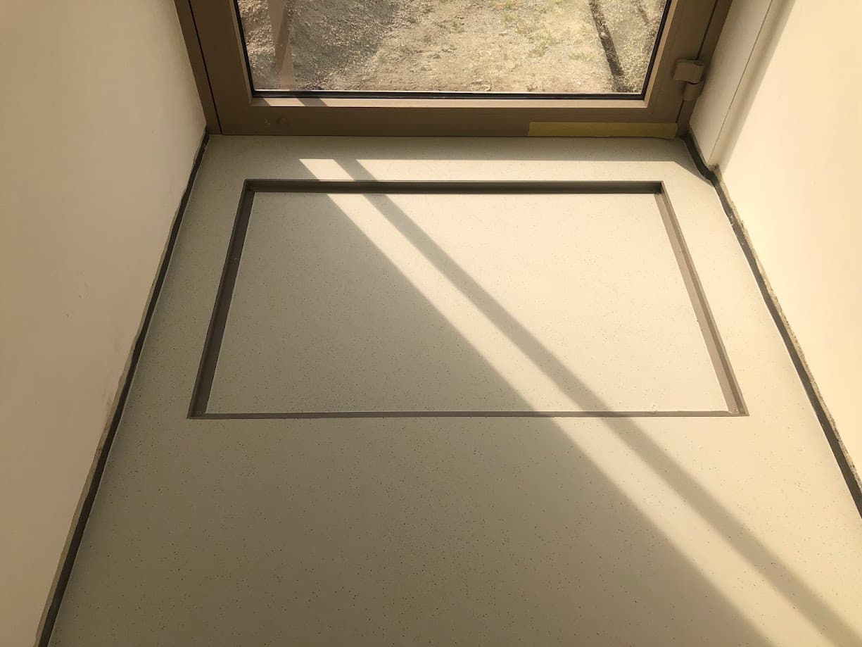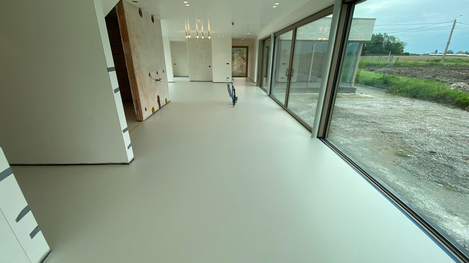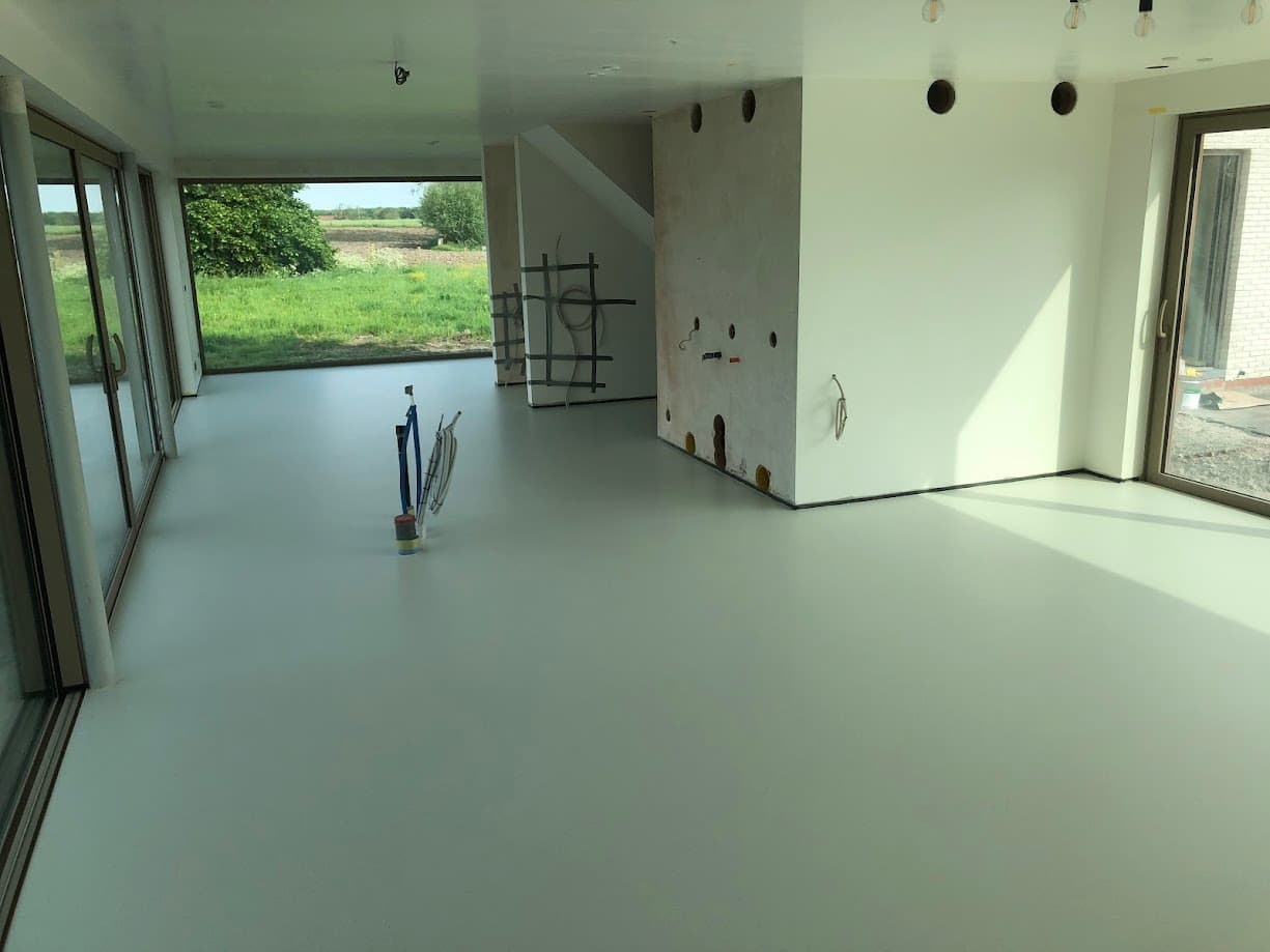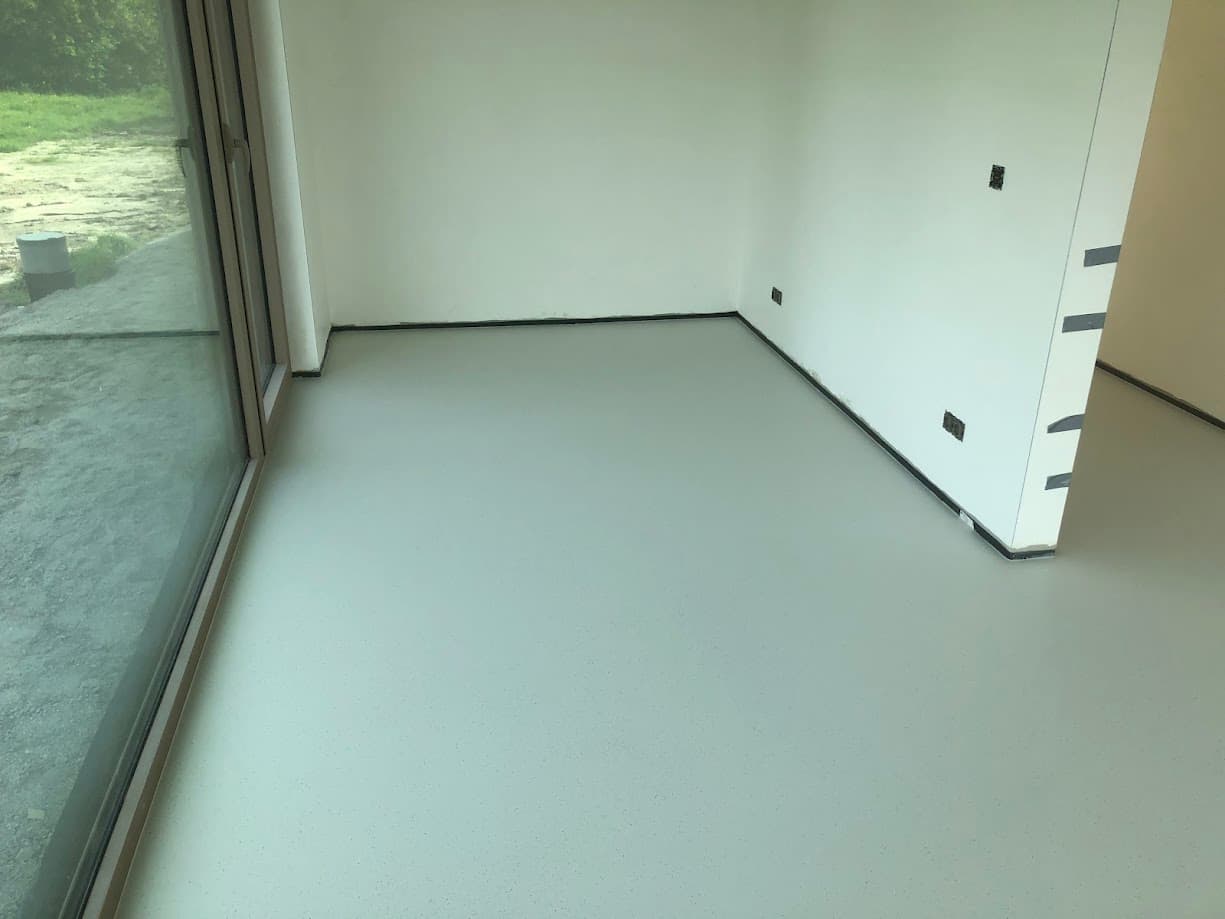 Deze zachte !alifatische! pu gietvloer met decoratieve flakes geeft een speels effect aan de vloer waardoor deze PRACHTIGE woning een unieke, levendige uitstraling krijgt. De flakes kunnen aangepast worden aan de kleuren en stijl van de ruimte,.